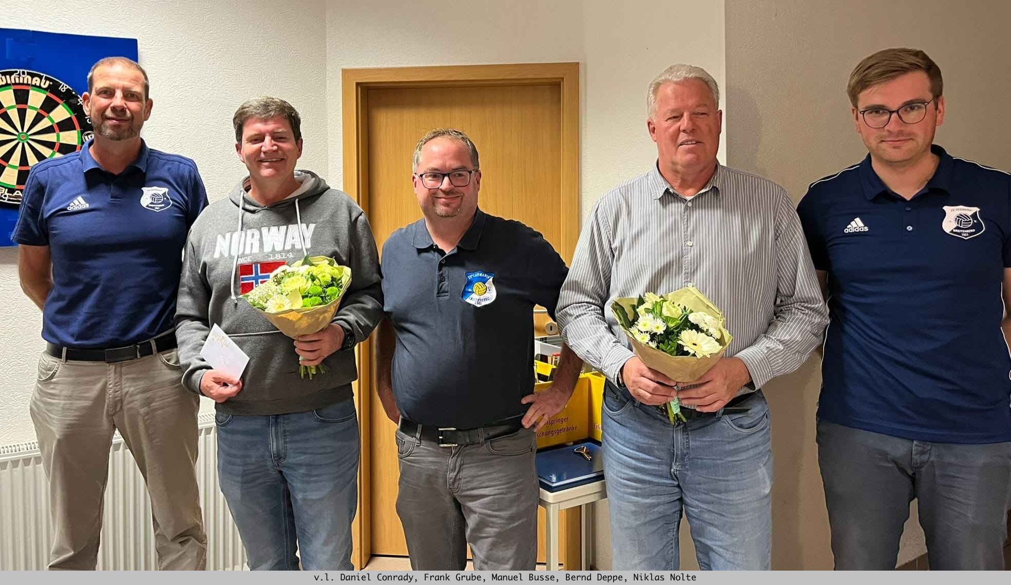 Ein neuer Vorstand bedeutet allerdings auch, dass zwei wichtige Mitglieder ihr Amt zur Verfügung gestellt haben. In unserem Fall sind das Bernd Deppe, der jahrelang unser 1. Vorsitzender (Präsi) war und auch schon vorher in unterschiedlichen Funktionen im Vorstand und Verein tätig war. Außerdem Frank Grube, der zuletzt als Kassenwart fungierte, aber auch in anderen Bereichen sehr aktiv mitgewirkt hat. Beiden sagen wir DANKE für den unermüdlichen Einsatz im Verein und für den Verein!